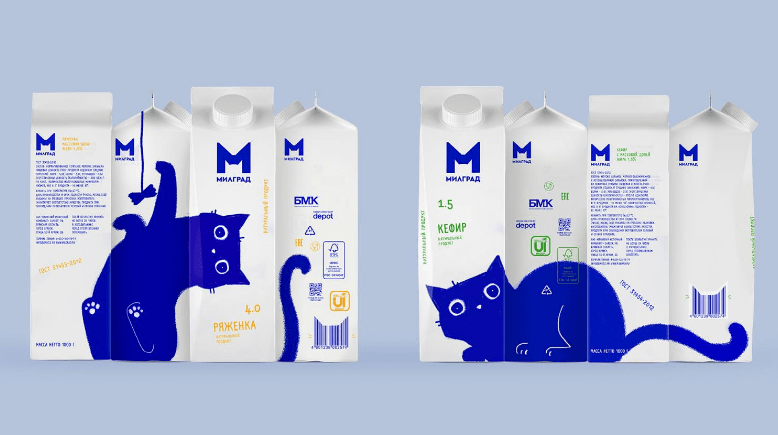 Milgrad的牛奶,將貓咪印在了奶盒的四面。 將四盒奶拼在一起,就可還原回一只完整的貓咪??蓯?ài)的設計仿佛在說(shuō):買(mǎi)牛奶還“送貓”哦!