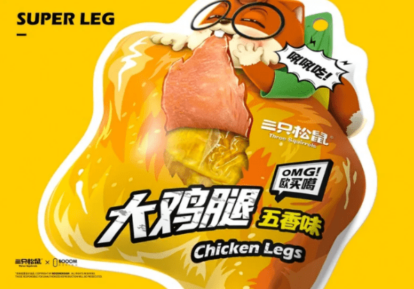 三只松鼠的新品包裝中, 由松鼠將包裝“撕”出一個(gè)開(kāi)窗,以便消費者可以直接看到內部的美味雞腿。