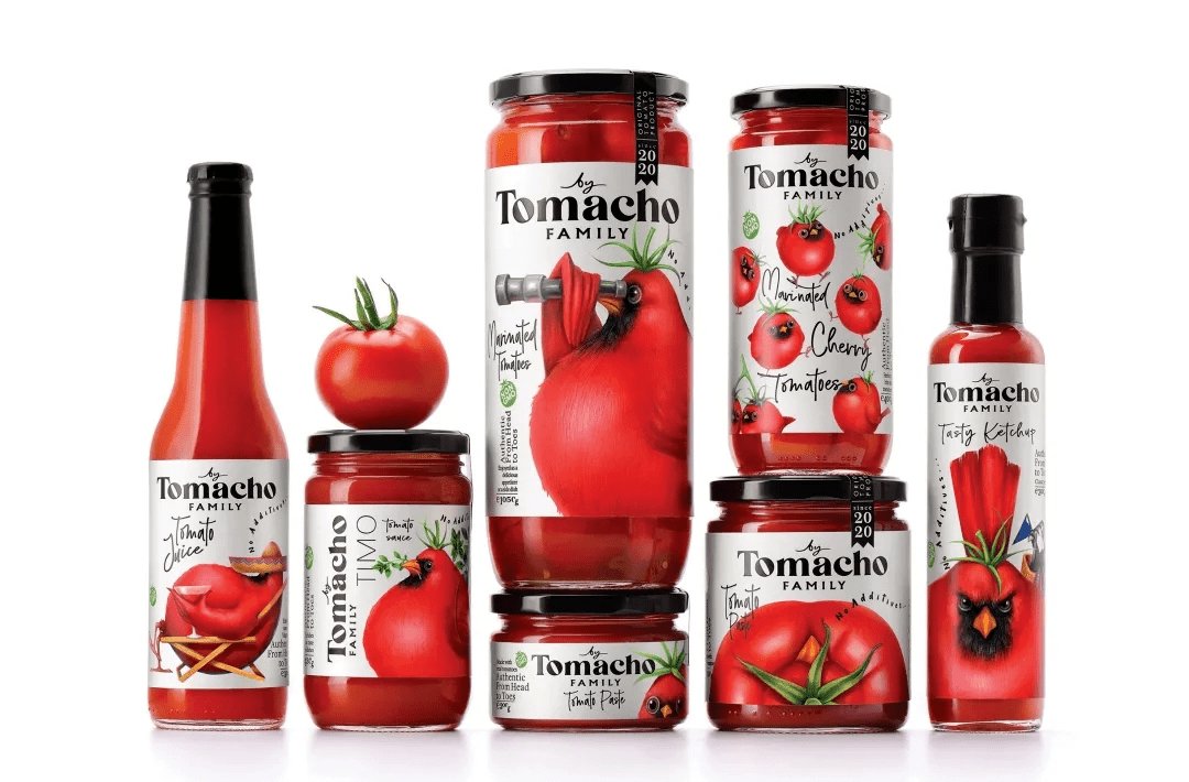 亞美尼亞即將上市的Tomacho番茄系列產(chǎn)品,則 將番茄化身為了可愛(ài)的“小雞家族”。從代表小番茄的小雞寶寶,到代表橄欖油番茄干的雞爺爺。