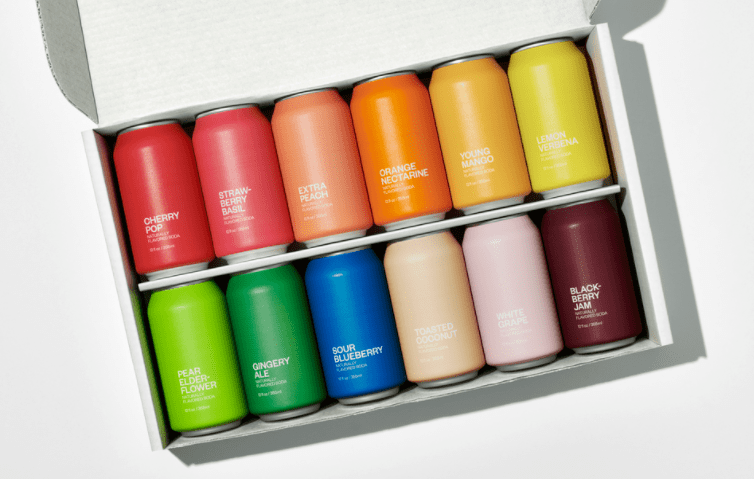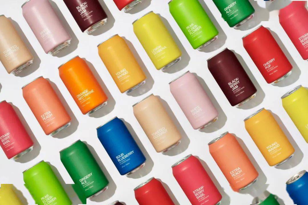 2020年,美國蘇打水品牌United Sodas Of America發(fā)布了其新系列作品。12款蘇打水組成了靚麗的彩虹配色,并用色彩與口味直接建立聯(lián)系。例如粉色代表桃子、淺橙色代表芒果……放在貨架上令人過(guò)目難忘。