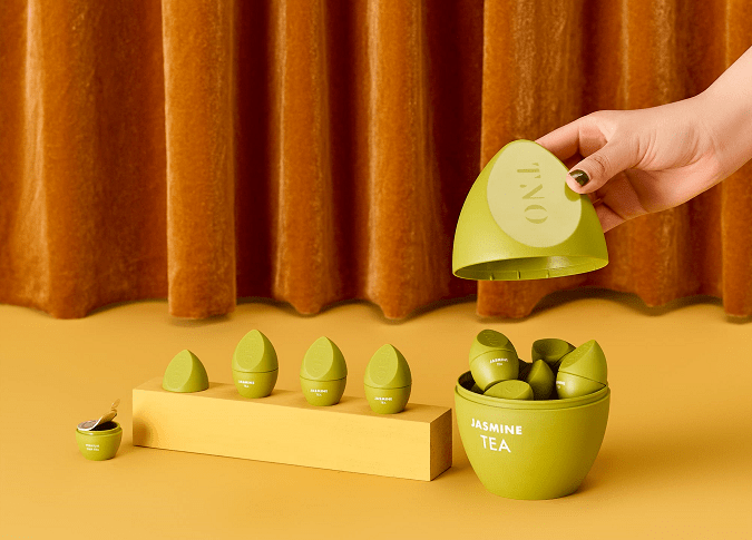 新潮茶飲品牌TNO,則將即溶凍干茶粉產(chǎn)品,制作成“水滴茶”的小罐塑封包裝形式。小罐可愛(ài)的外形還被許多消費者稱(chēng)為“美妝蛋”。