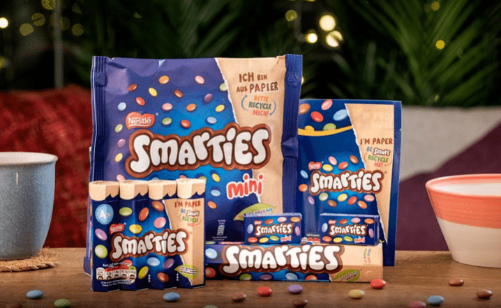 上月,雀巢旗下的糖果品牌Smarties就宣布, 將為旗下糖果全面改用可回收紙包裝,預計每年將在全球減少2.5億個(gè)塑料包裝的使用。